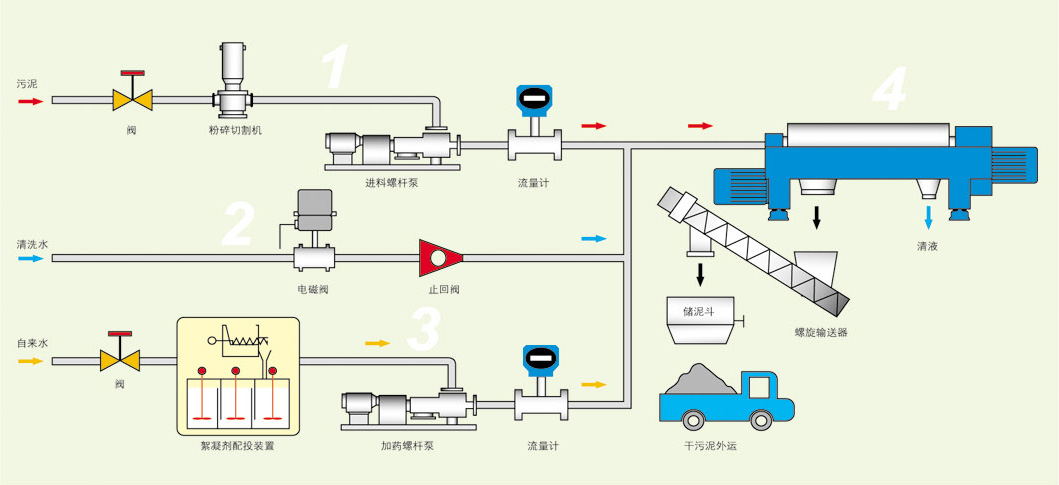 我公司生產(chǎn)的離心式污泥脫水機可以實現(xiàn)污泥濃縮、污泥脫水以及污泥濃縮脫水一體化三種功能。整個濃縮脫水系統(tǒng)包括五個部分:(1)污泥進料系統(tǒng);(2)絮凝劑投配系統(tǒng);(3)濃縮、脫水系統(tǒng);(4)泥餅輸送系統(tǒng);(5)成套系統(tǒng)電控裝置在成套系統(tǒng)電控裝置方面,我公司各種配置以適應(yīng)不同的客戶群,主要有:(1)簡易型:在運行中可實現(xiàn)自動控制;(2)通用型:帶PLC控制。